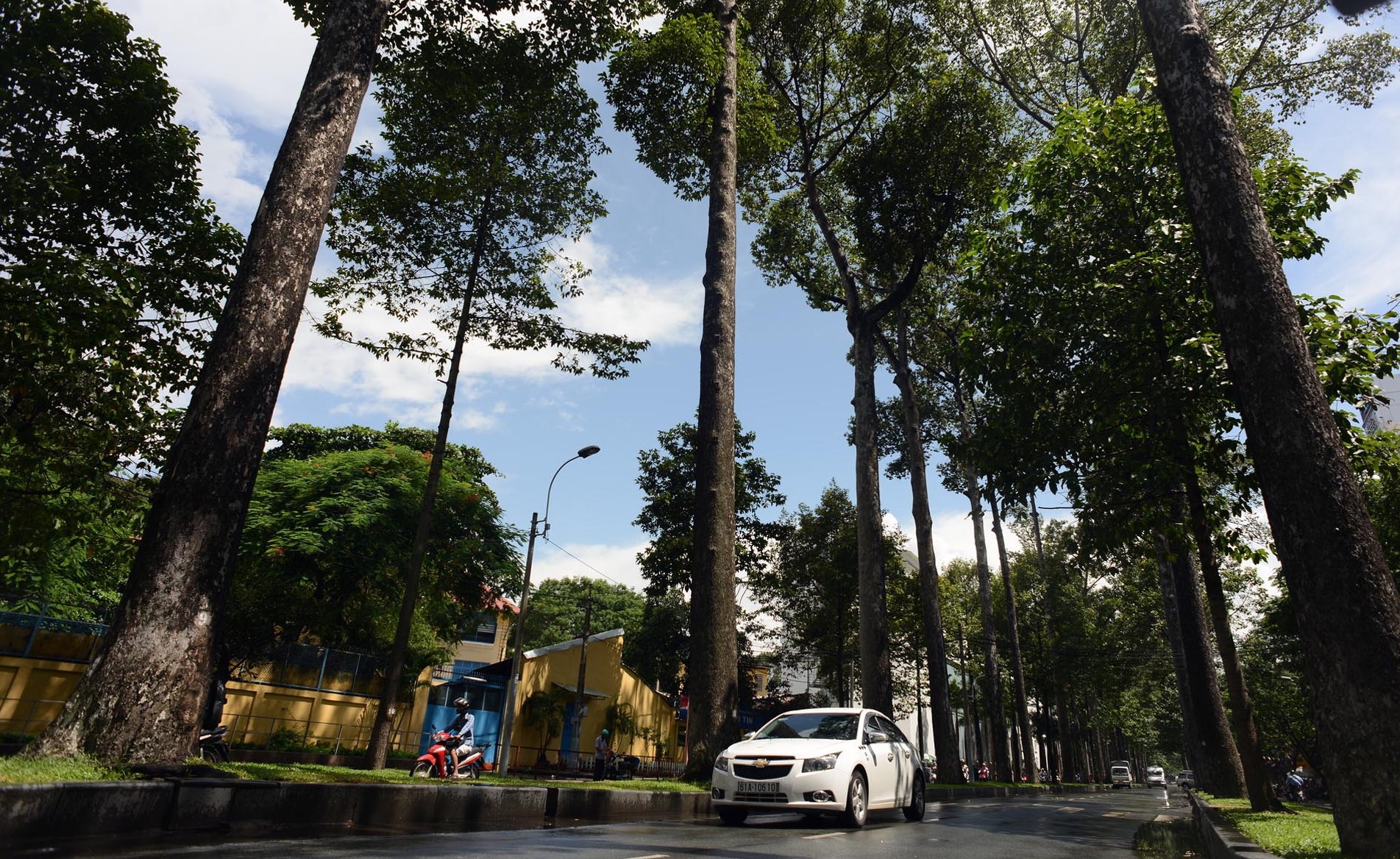 | Từ 10h sáng đến 3h chiều là đỉnh điểm của nắng gắt. Trên đường phố Sài Gòn vào thời điểm này nhiệt độ có thể lên đến gần 40 độ C. Tuy nhiên, những tuyến phố có cây xanh dày lại mát mẻ hơn nhiều. |