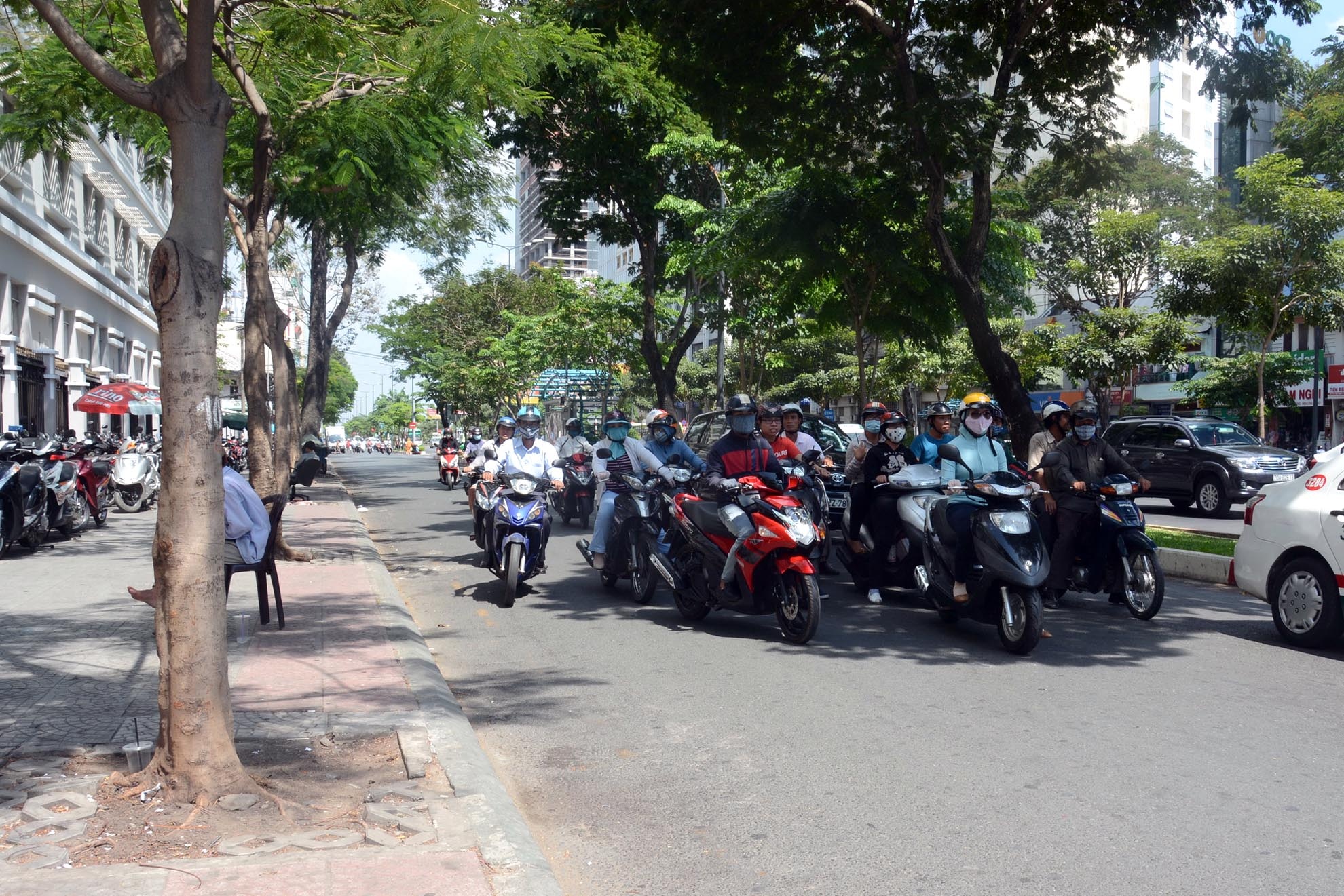 | Nắng gắt dọi xuống mặt đường, động cơ xe bốc hơi nóng hừng hực. Nhiều người ra đường phải bịt kín mặt, tìm đủ mọi cách để giảm nhiệt. Những bóng cây trên đường phố, gần các đèn tín hiệu giao thông trở thành chỗ trú lý tưởng cho nhiều người đi xe máy trong lúc chờ đèn tín hiệu chuyển xanh. |