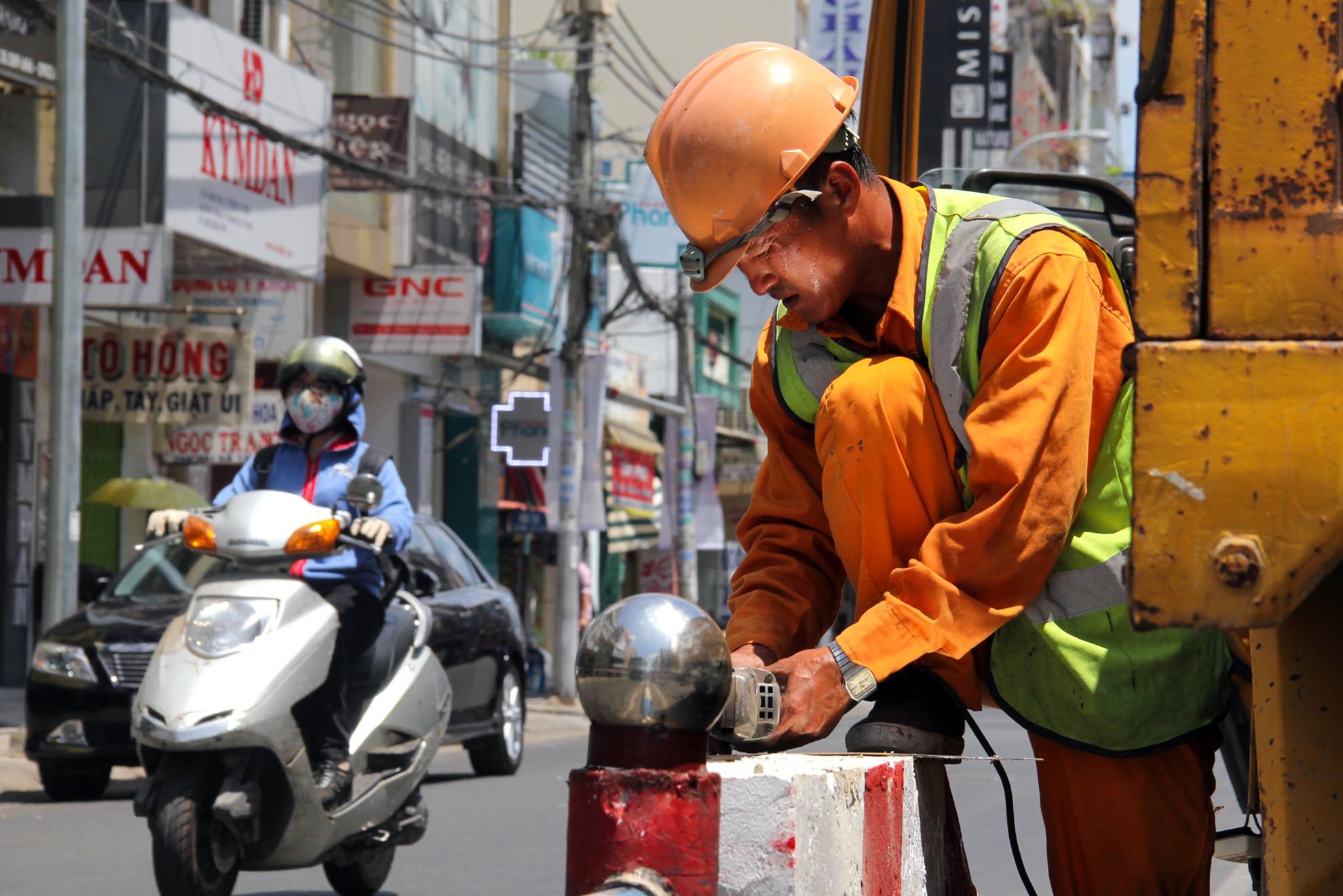 Giữa trưa, nhiệt độ ngoài trời ở TP HCM lên tới gần 40 độ C. Đợt nắng nóng gay gắt đầu hè khiến cuộc sống mưu sinh của hàng nghìn người thêm vất vả.
