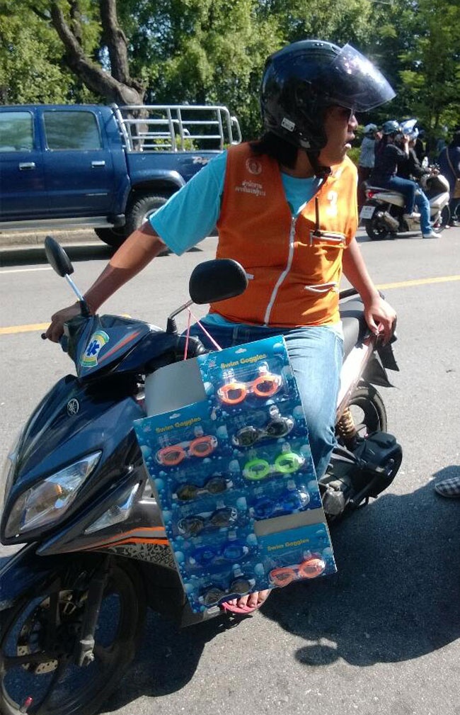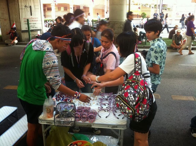 ... hay những món phụ kiện đều được cung ứng trên các đường phố Bangkok, nơi dòng người biểu tỉnh đang chiếm đóng. Ảnh: Baynhe