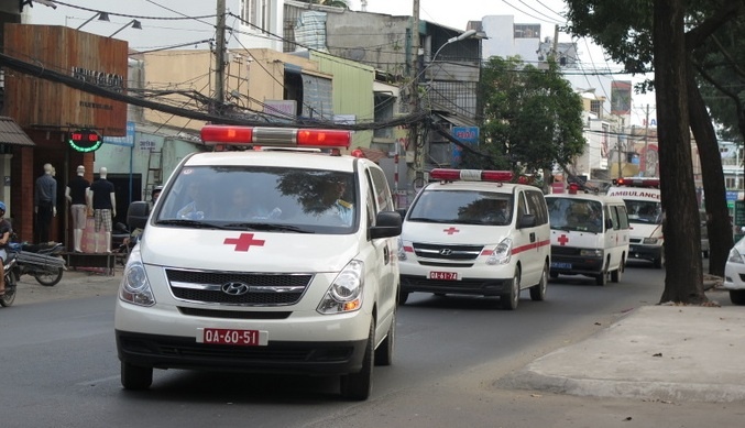 | 14h, thi thể 4 chiến sĩ hy sinh đã được đưa về nhà tang lễ Bộ Quốc phòng trên đường Phạm Ngũ Lão (quận Gò Vấp). |