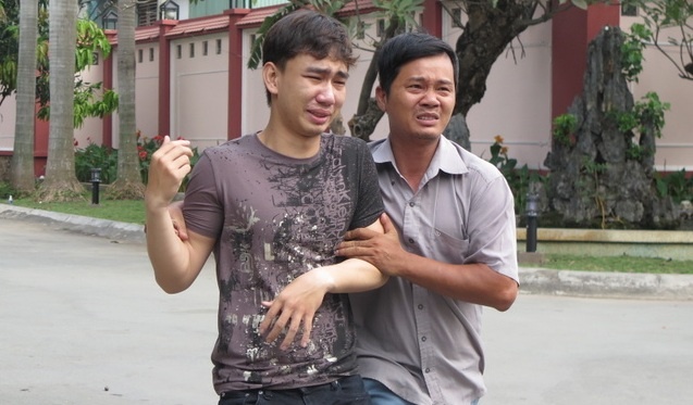 | Khi thi thể một chiến sĩ được đưa xuống khỏi xe cứu thương, một người đàn ông òa khóc. |