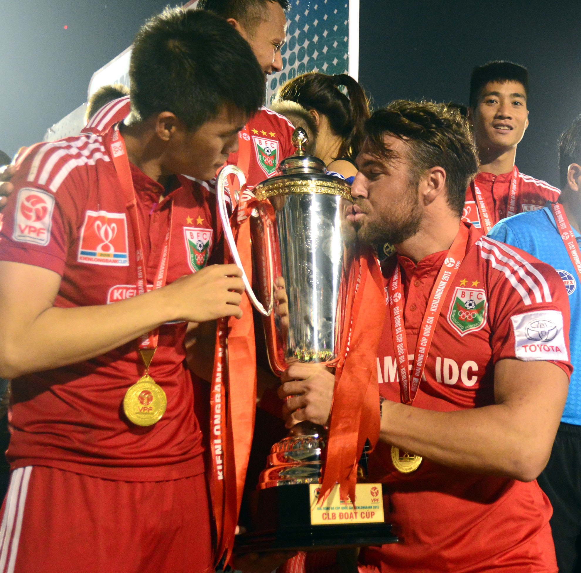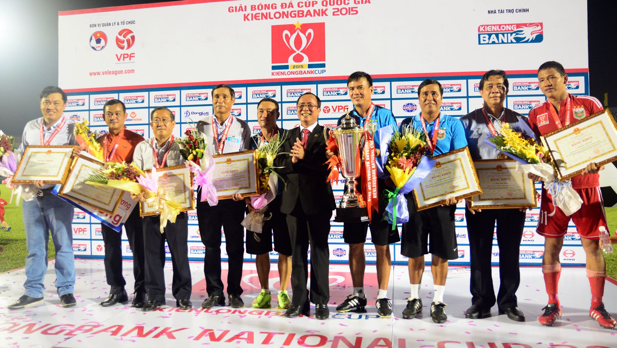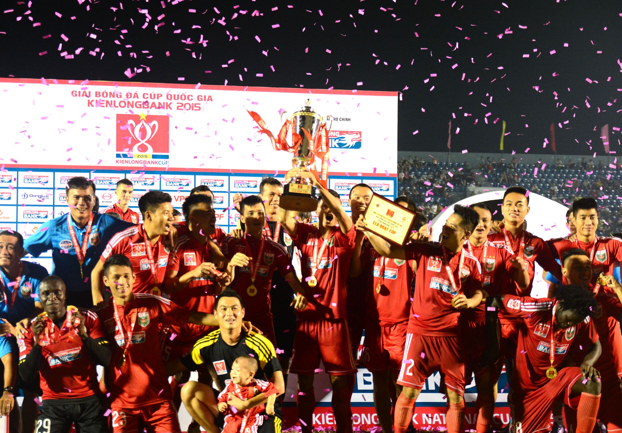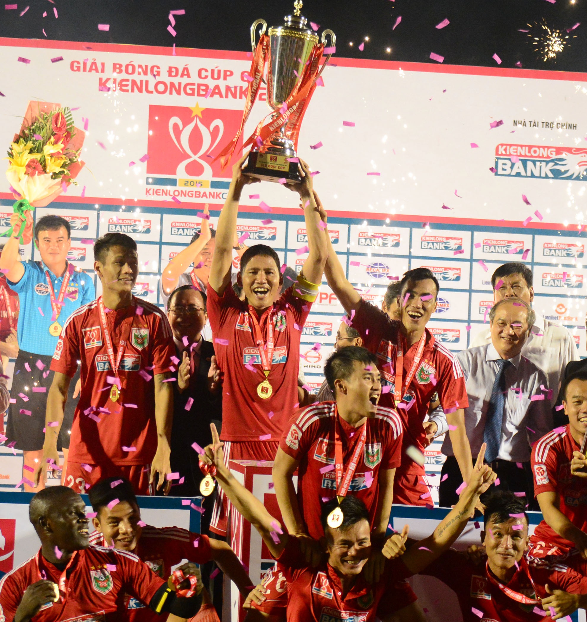 | Chiều 26/9, trên sân vận động Gò Đậu, đội chủ nhà đã giành chiến thắng 4-2 trước Hà Nội T&T trong 90 phút thi đấu chính thức trận tranh cúp Quốc Gia năm 2015, qua đó lần đầu lên ngôi vương. |