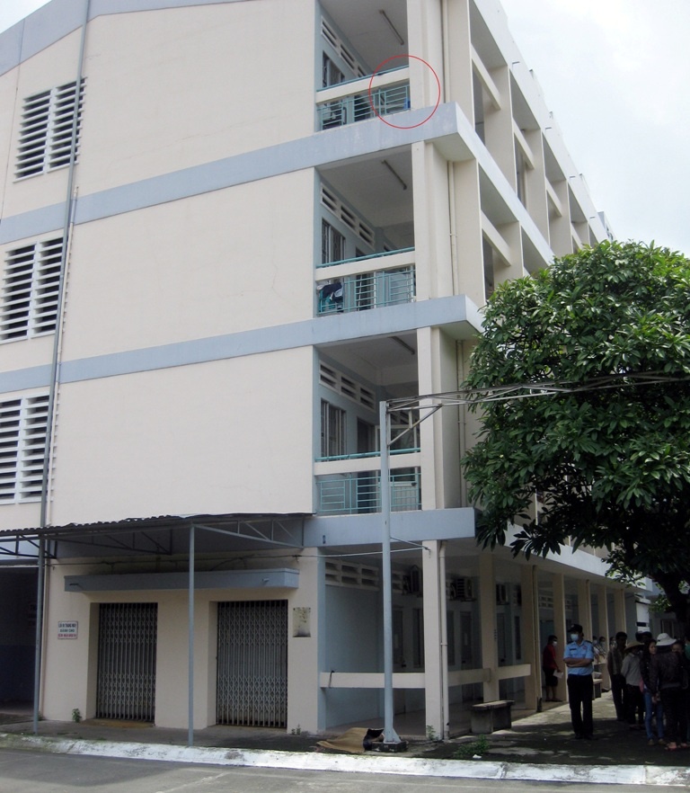 | Lầu 3 nơi bà Phụng bắt ghế trèo qua lan can rồi nhảy xuống đất tự tử. |