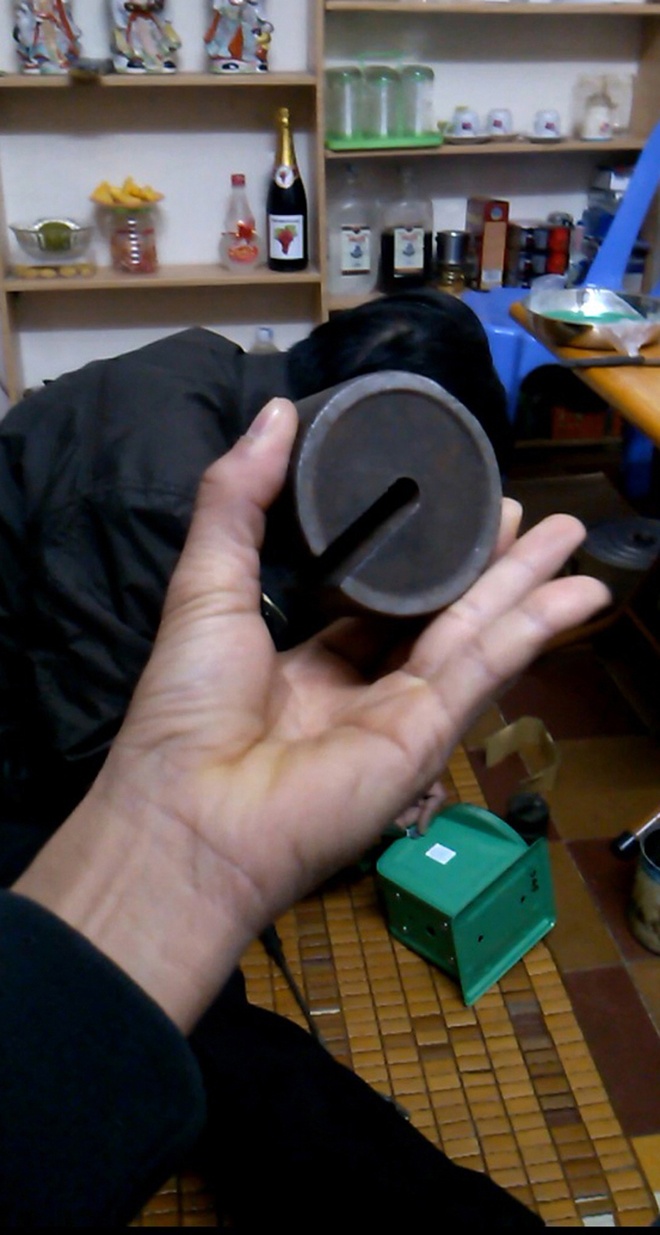 | Theo lời ông chủ, cục sắt đúng 1kg để làm mẫu có dấu chứng nhận đo lường. |