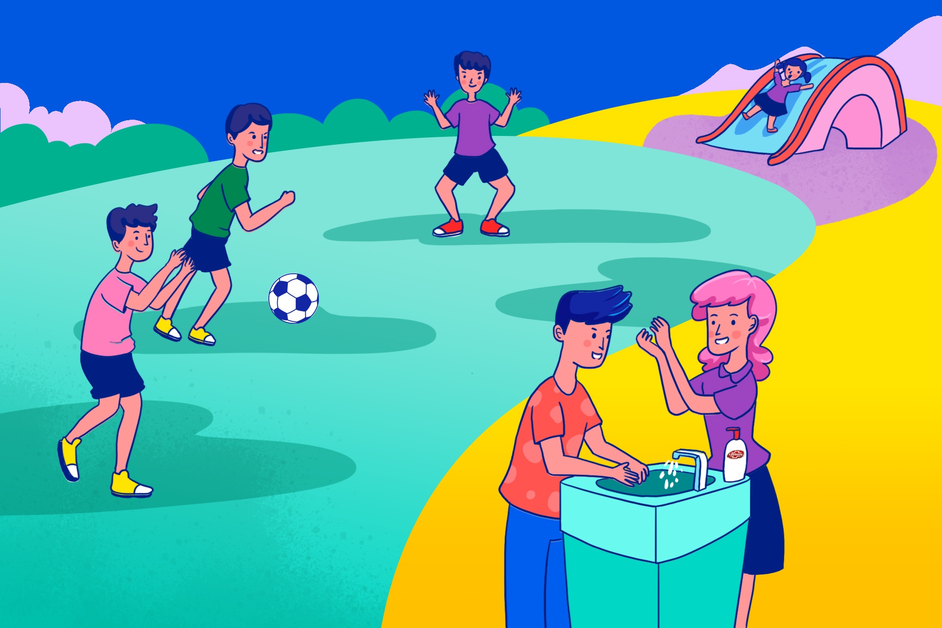 Chương trình nhằm nâng cấp các điều kiện vệ sinh đạt chuẩn, đi cùng với giáo án điện tử huấn luyện thói quen vệ sinh và thể chất cho học sinh tiểu học, bao gồm: Đánh răng ngày 2 lần sáng và tối; khuyến khích trẻ “lấm bẩn” để trồng cây; cung cấp nước sạch cho học sinh uống hàng ngày; xây dựng nhà vệ sinh đạt chuẩn và hướng dẫn trẻ hành vi đi vệ sinh chuẩn; rửa tay đúng cách trước khi ăn và sau khi đi vệ sinh.