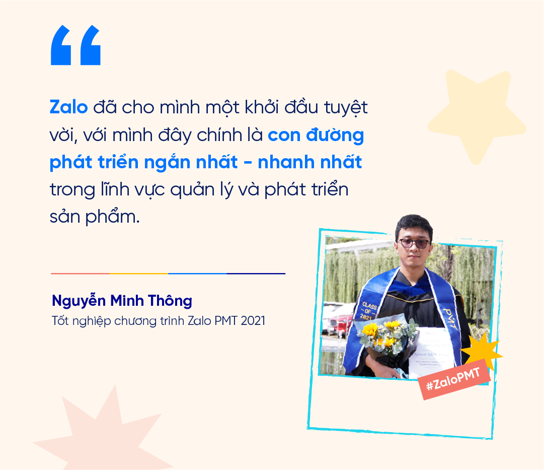 "Zalo đã cho mình một khởi đầu tuyệt vời, với mình đây chính là con đường phát triển ngắn nhất - nhanh nhất trong lĩnh vực quản lý và phát triển sản phẩm tại Zalo", Thông chia sẻ.