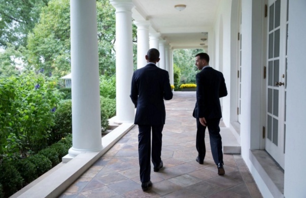Tổng thống Obama và người trợ lý đang đi dọc hành lang Colonnade trong Nhà Trắng. Ảnh: White House |