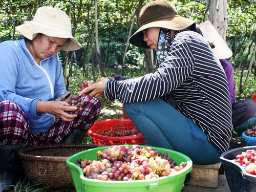 Hiện các vườn nho ở Ninh Thuận đang thu hoạch vụ chính, năng suất cao xấp xỉ 2 tấn/sào nên người trồng nho được lợi kép, tức vừa được mùa lại trúng giá. Ước tính mỗi sào nho, nông dân lãi ròng khoảng 25-27 triệu đồng.