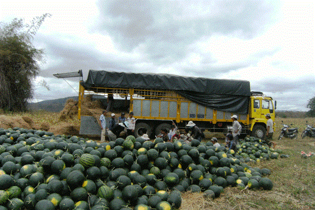 | Dưa hấu đang là đích ngắm của thương lái TQ. |