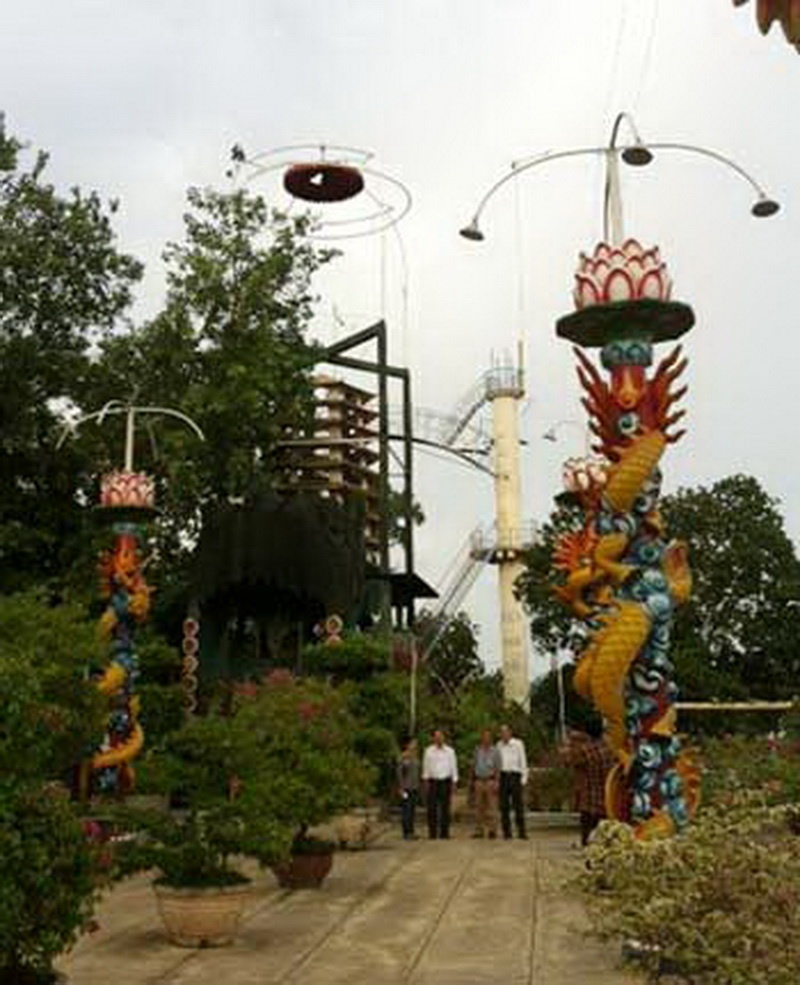 Quá trình tu, ông đạo Dừa cho đệ tử chặt một cây dừa cao, đóng một nền ván hình bát quái ở trên, dựng ngay sát bờ sông Tiền, ông treo mình lên đó ngồi thiền ngày này qua tháng khác. Sau này, sang Cồn Phụng (cù lao nằm giữa sông Tiền chảy qua Tiền Giang), ông đạo Dừa còn cho người làm thêm chiếc đài cao ngót 20m để ông tiếp tục lên ngồi thiền. Ngày nay, cột tháp đó vẫn sừng sững ở trên Cồn Phụng và được cho là điểm du lịch tạo sự hiếu kì muôn thuở đối với du khách. Cồn Phụng từ một bãi bồi hoang vu giữa sông Tiền bỗng chốc sầm uất, ngày ngày vang lên tiếng kinh cầu, người người lui tới tấp nập. Sinh thời, ông đạo Dừa tự đặt cho Cồn Phụng cái tên mỹ miều là "Đại giang sơn Cồn Phụng".