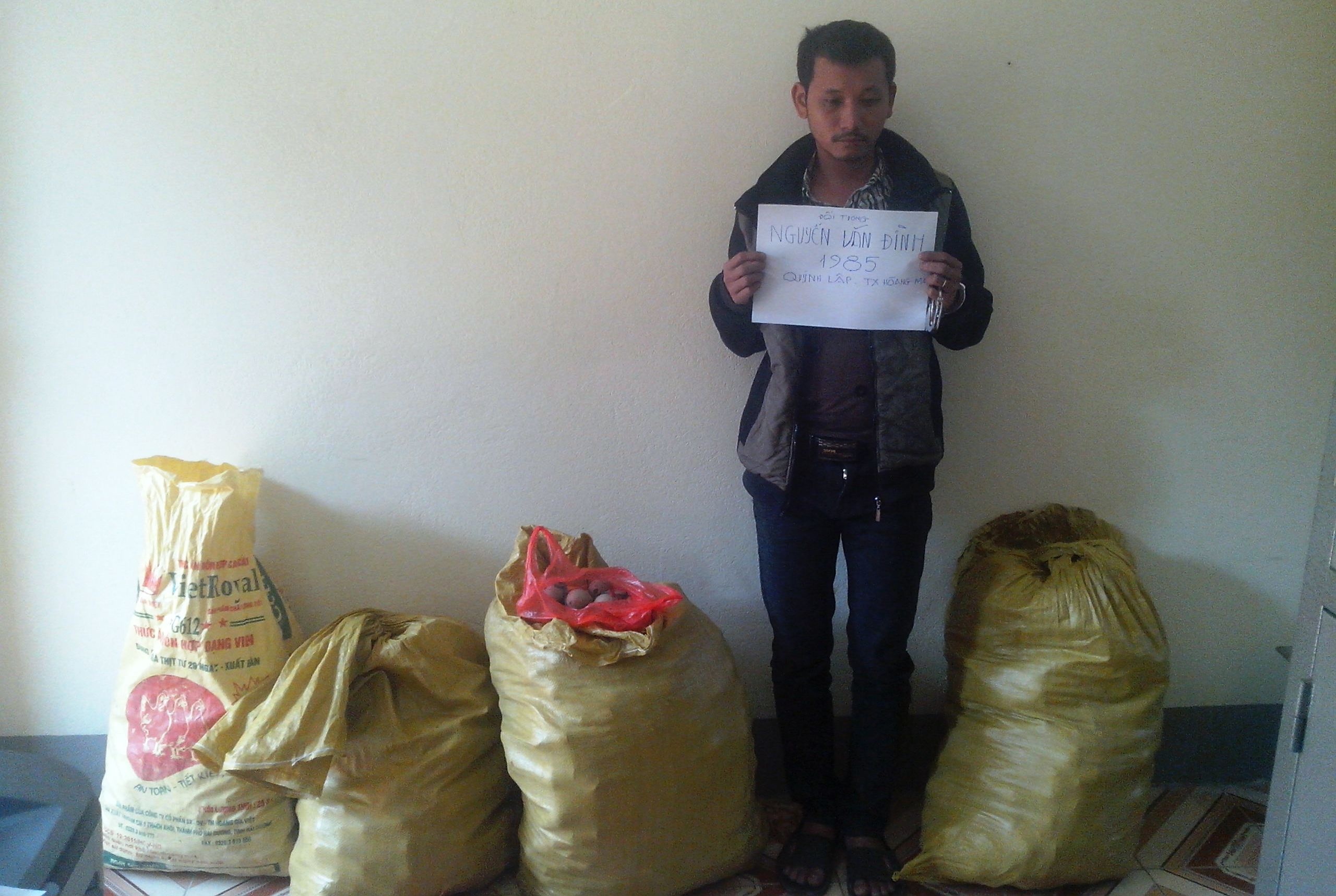 Trưa một ngày trước, Đình đi xe máy qua xã Quỳnh Lộc chở một bao tải. Thấy người này có những biểu hiện bất minh, công an Hoàng Mai cùng Đội kiểm soát số 2 (Cục Hải quan Nghệ An) yêu cầu dừng xe để kiểm tra hành chính.