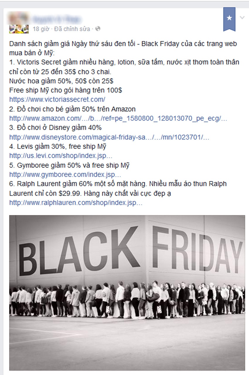 | Các trang đặt hàng thuê, vận chuyện hộ của Việt Nam nhanh chóng bắt kịp ngày lễ giảm giá lớn nhất ở Mỹ. Ảnh: FBNV. |