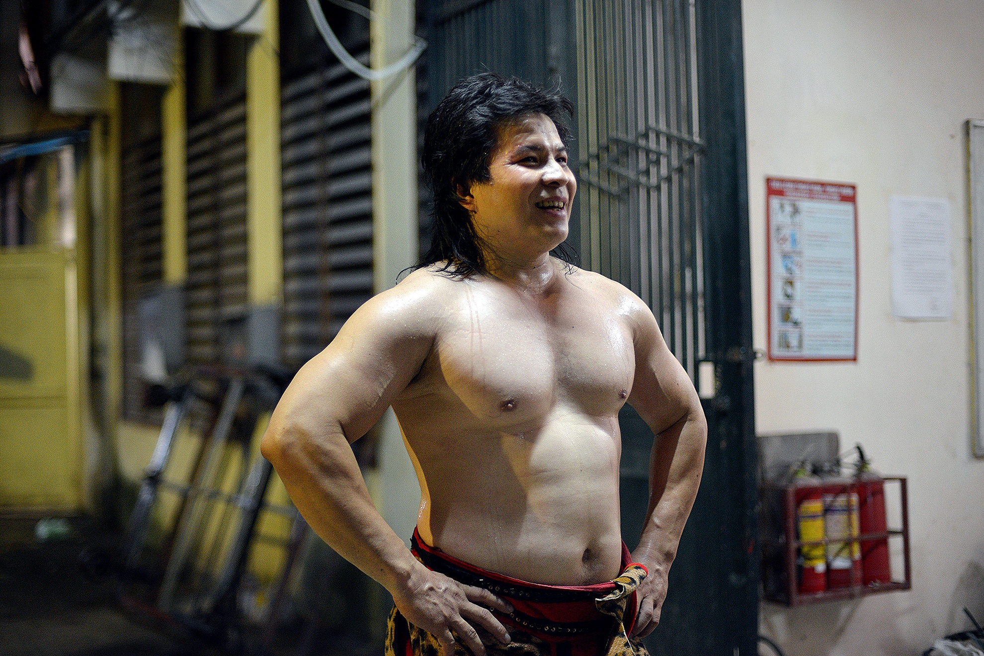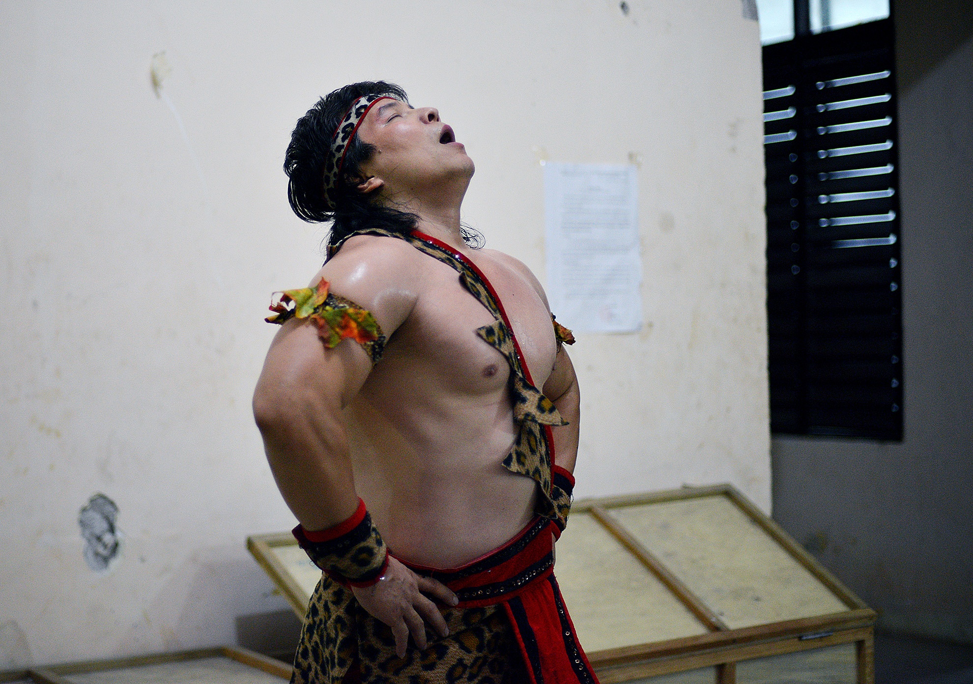 Vẻ mệt mỏi của người nghệ sĩ khi biểu diễn xong một tiết mục với trăn. Anh bảo, cuộc sống người nghệ sĩ là vậy, phía sau cánh gà sân khấu là những hình ảnh ít ai biết, không nhiều người có thể cảm nhận, thấu hiểu và cảm thông.