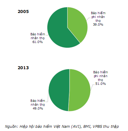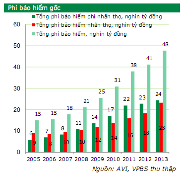 Mặc dù nhu cầu bảo hiểm đang tăng, nhưng tỷ trọng tổng phí bảo hiểm trên GDP vẫn dậm chân tại chỗ, đạt 1,5% trong giai đoạn từ năm 2005 đến năm 2013. Đây là một tỷ lệ khá thấp so với các nước khác trong khu vực (ví dụ Thái Lan: 14%, Malaysia: 16% ) cũng như nhu cầu thực tế của người dân Việt Nam.