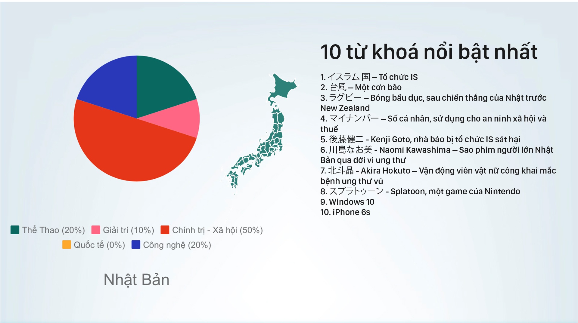 | Nhật Bản có kết quả đa dạng nhất, có nhiều lĩnh vực được quan tâm và người dân nước này luôn chủ động tìm kiếm thông tin liên quan đến sức khoẻ. |