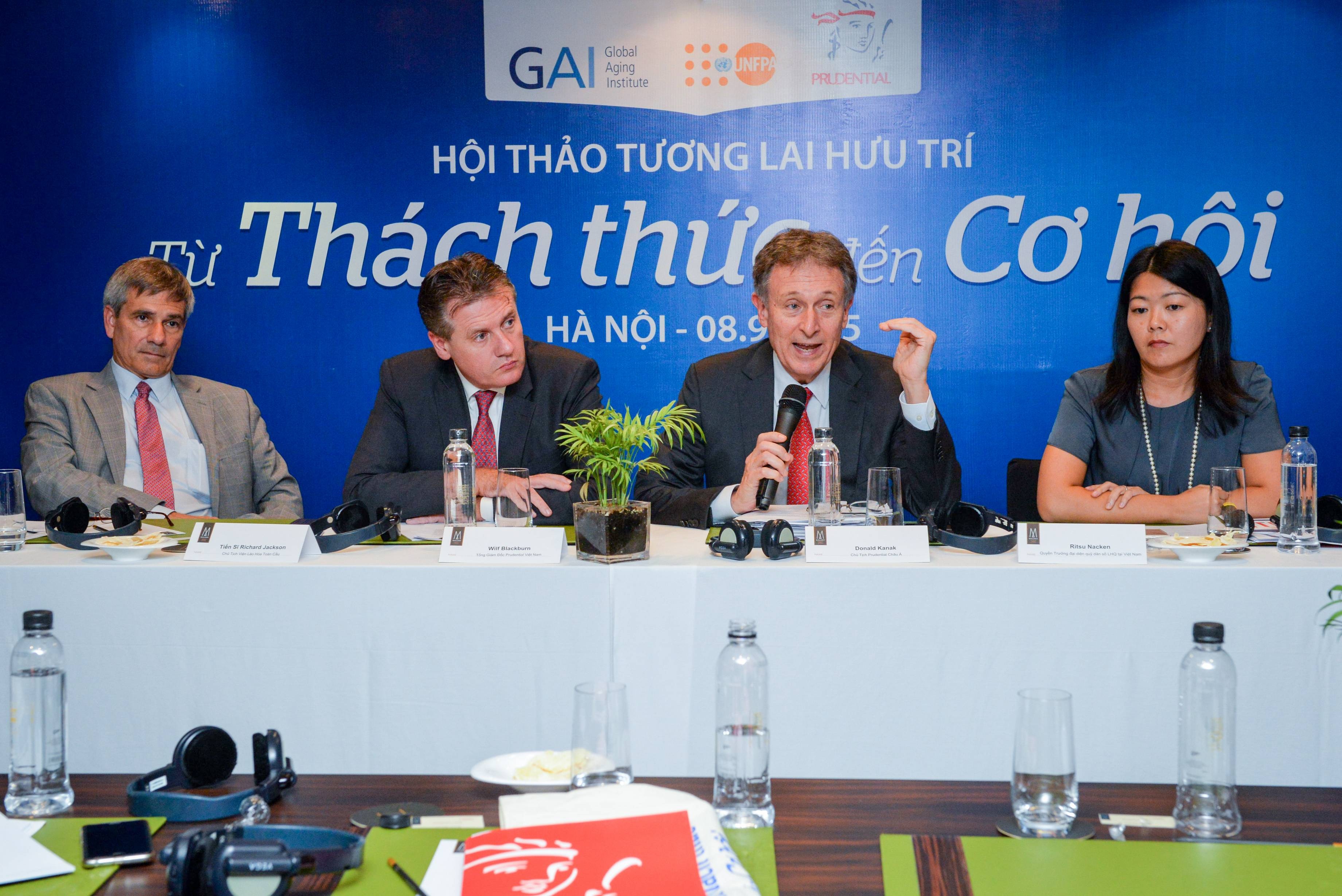 | Hội thảo tương lai hưu trí được tổ chức bởi Prudential, Viện Lão hóa toàn cầu và Quỹ dân số Liên Hiệp Quốc tại Hà Nội. |