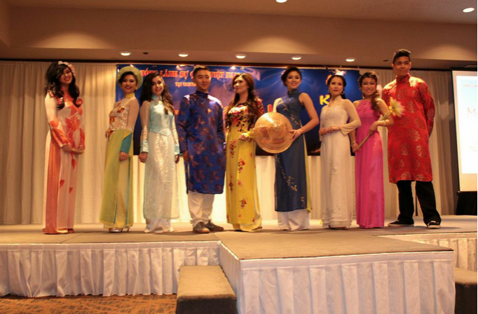 Màn trình diễn áo dài gây ấn tượng đặc biệt với quan khách. Đa phần các bạn trẻ thuộc thế hệ thứ hai sinh ra và lớn lên tại Canada. |