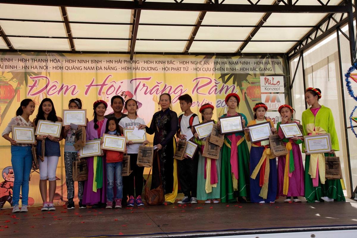 | Các em nhỏ mang 2 dòng máu Đức - Việt và người bản xứ tới dự các tiết mục văn nghệ mừng Tết Trung thu. Thời tiết ở Berlin đúng dịp rằm tháng 8 dễ chịu, se lạnh nhưng tràn ngập nắng. |