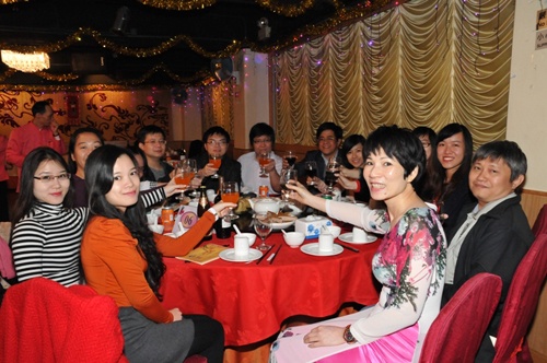 | Bà con người Việt trên địa bàn nâng cốc chúc mừng năm mới. |