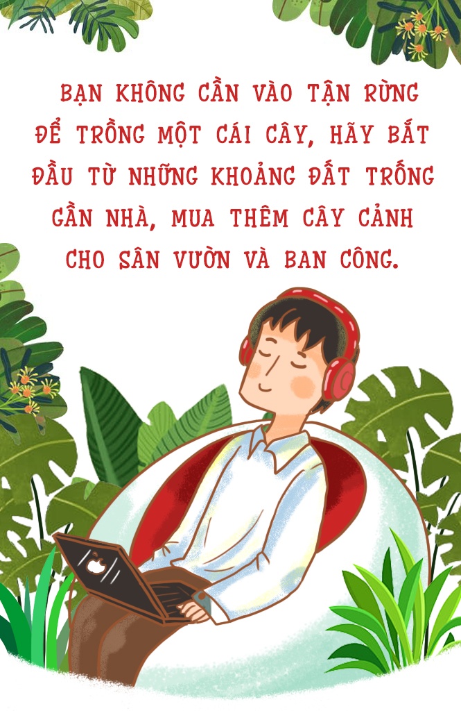 Đừng nghĩ trồng cây là việc khó khăn, vất vả, phải trèo đèo lội suối hay lên tận đồi trọc để đào hố gieo mầm, bạn hoàn toàn có thể bắt đầu từ những khoảng đất trống tại con hẻm nơi bạn sống, sân vườn và ban công. Mỗi cây cổ thụ đều khởi nguồn từ một mầm non, và một xã hội yêu thiên nhiên được bắt đầu từ những nhóm nhỏ có ý thức.