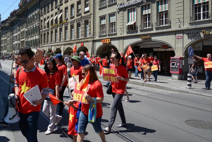 Theo thông tin từ ban tổ chức, khoảng 200 người tham gia biểu tình phản đối các hành vi ngang ngược, vi phạm trắng trợn luật pháp quốc tế của nhà cầm quyền Trung Quốc. Họ gồm người đại diện cho nhiều hội, đoàn và các cá nhân. Nhiều bạn bè người Thụy Sĩ tới từ thành phố Bern (thủ đô của Thụy Sĩ), các vùng lân cận và cả các thành phố cách xa hàng trăm km như Zurich, Geneva. |