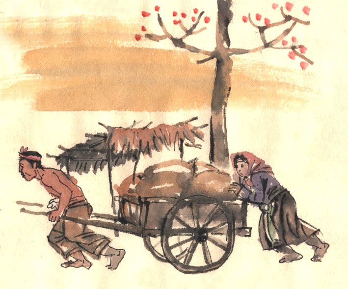 Đây là câu văn diễn tả tâm trạng của bà cụ Tứ, mẹ của Tràng khi biết con mình có vợ. Trong truyện Vợ nhặt, Kim Lân đã rất thành công khi miêu tả diễn biến tâm lý của người mẹ nghèo khổ nhưng giàu lòng nhân hậu. Ảnh minh họa: Nguyễn Việt Hưng. |