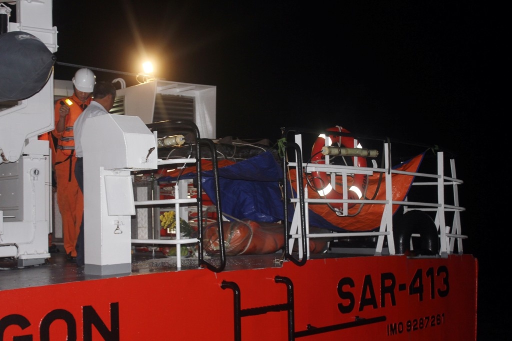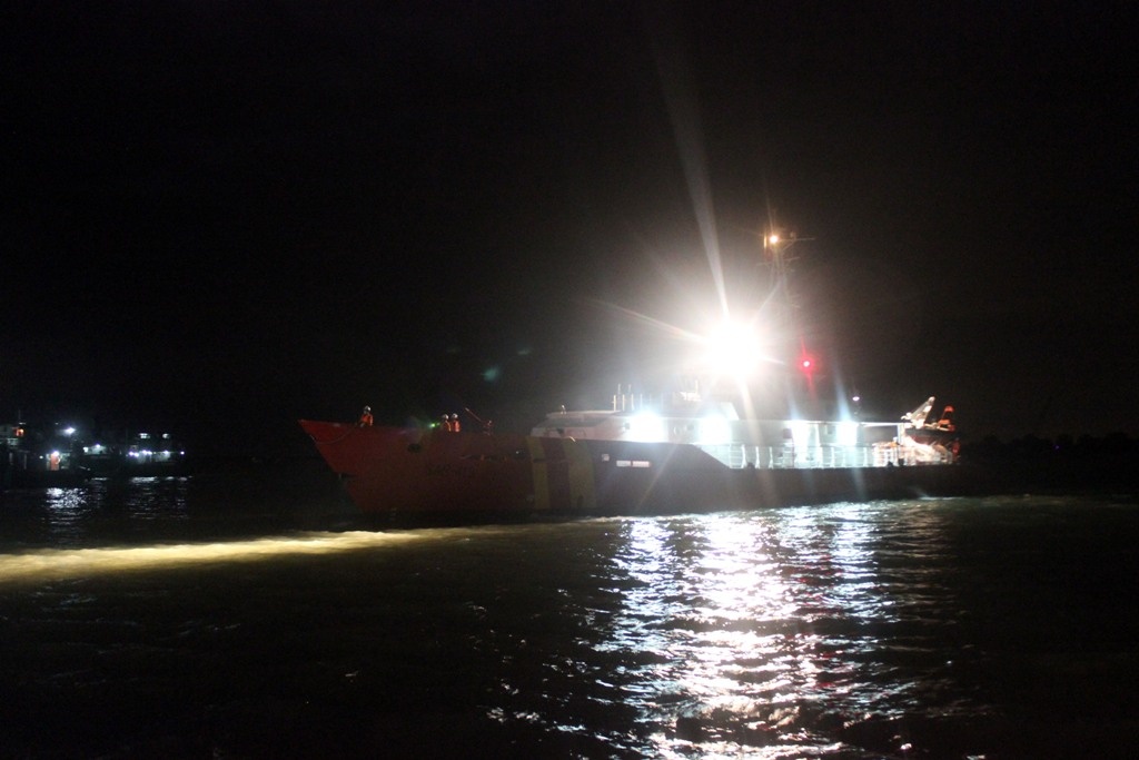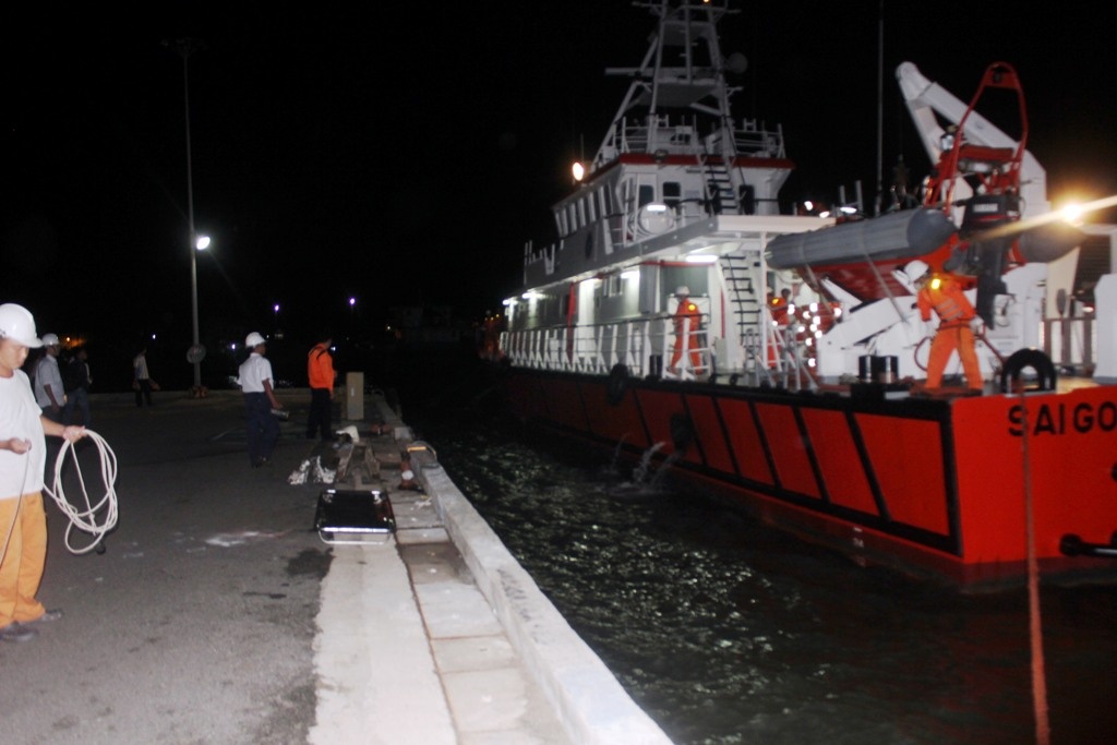 | Đến hơn 0h30 rạng sáng 18/9, tàu cứu hộ cứu nạn SAR 413 cập bến Trung tâm phối hợp tìm kiếm cứu nạn hàng hải KV3. |