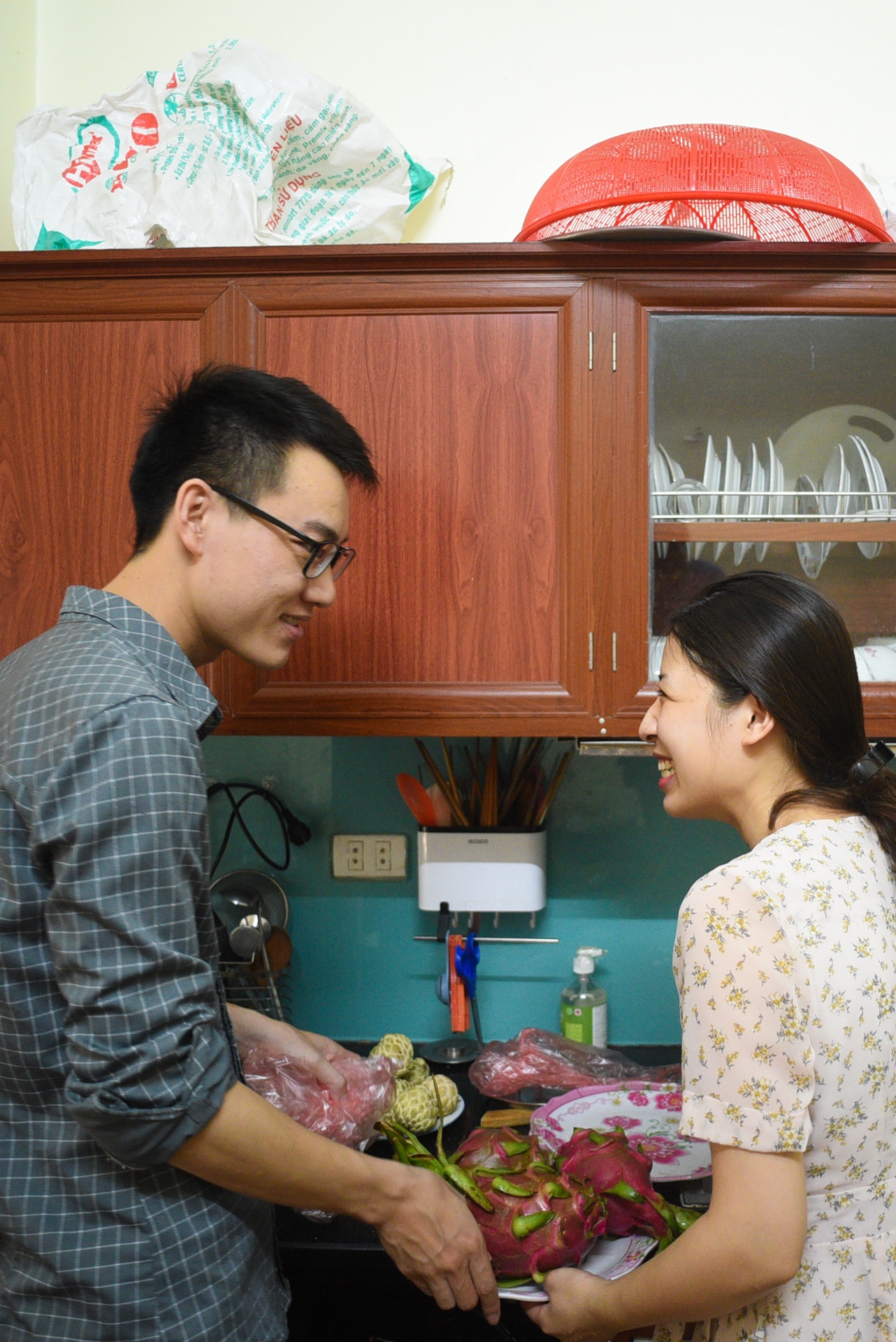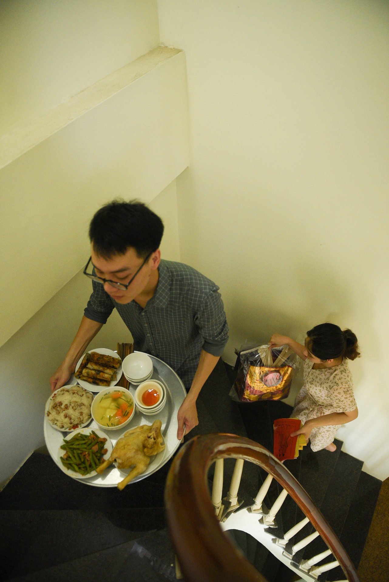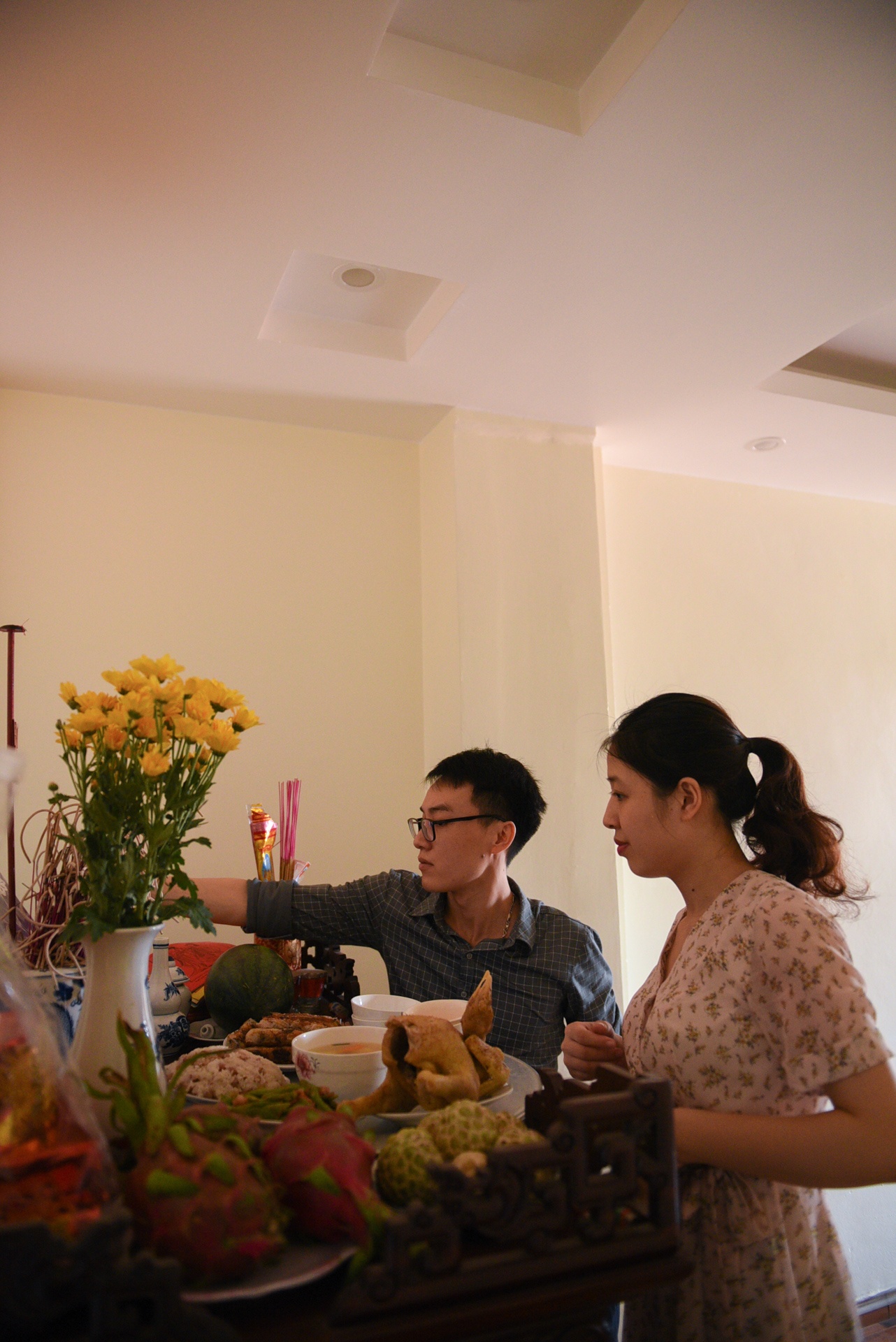 | Sau khi cúng chúng sinh, tôi cùng chồng chuẩn bị cho lễ cúng trên ban thờ gia tiên. Hôm nay được nghỉ làm nên chồng tôi vào bếp phụ nấu nướng. Thỉnh thoảng làm nhầm món gì đó, anh ấy lại cười phá lên. Đây thực sự là một trải nghiệm mới của cả hai chúng tôi. |
