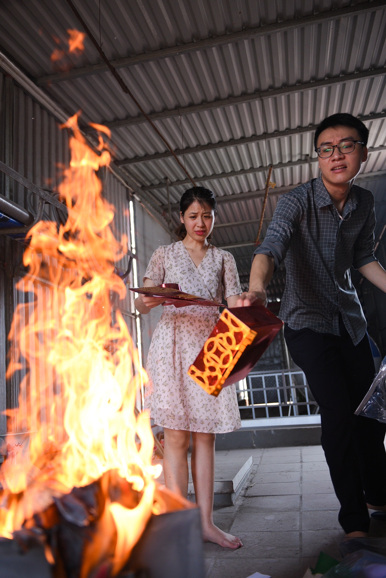 | Tôi trải đồ ra chiếc mâm nhỏ. Vì lần đầu tiên tự tay chuẩn bị mọi thứ nên có phần lóng ngóng. Thỉnh thoảng tôi phải gọi cho mẹ để hỏi lại cách sắp xếp đồ cúng. |