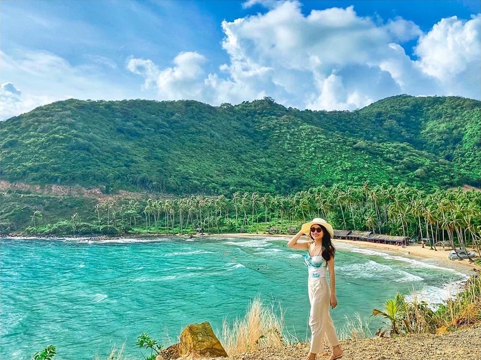 Nằm gọn trong một vịnh nhỏ, bãi Cây Mến được nhiều người đánh giá là đẹp nhất Hòn Củ Tron với nước biển trong xanh, bờ cát trắng mịn và hàng dừa cao vút ôm lấy theo hình vòng cung. Từ trục đường chính men theo triền núi ở đảo, bạn có thể ngắm toàn cảnh bãi Cây Mến và có những bức ảnh check-in ấn tượng. Ảnh: Duonghoang.207. |