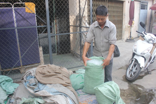 Ngoài ra, ở khâu trung gian (đại lý bán nước đá) còn phổ biến tình trạng tái sử dụng bao PP khiến nước đá bị vấy bẩn càng trở nên khó kiểm soát.