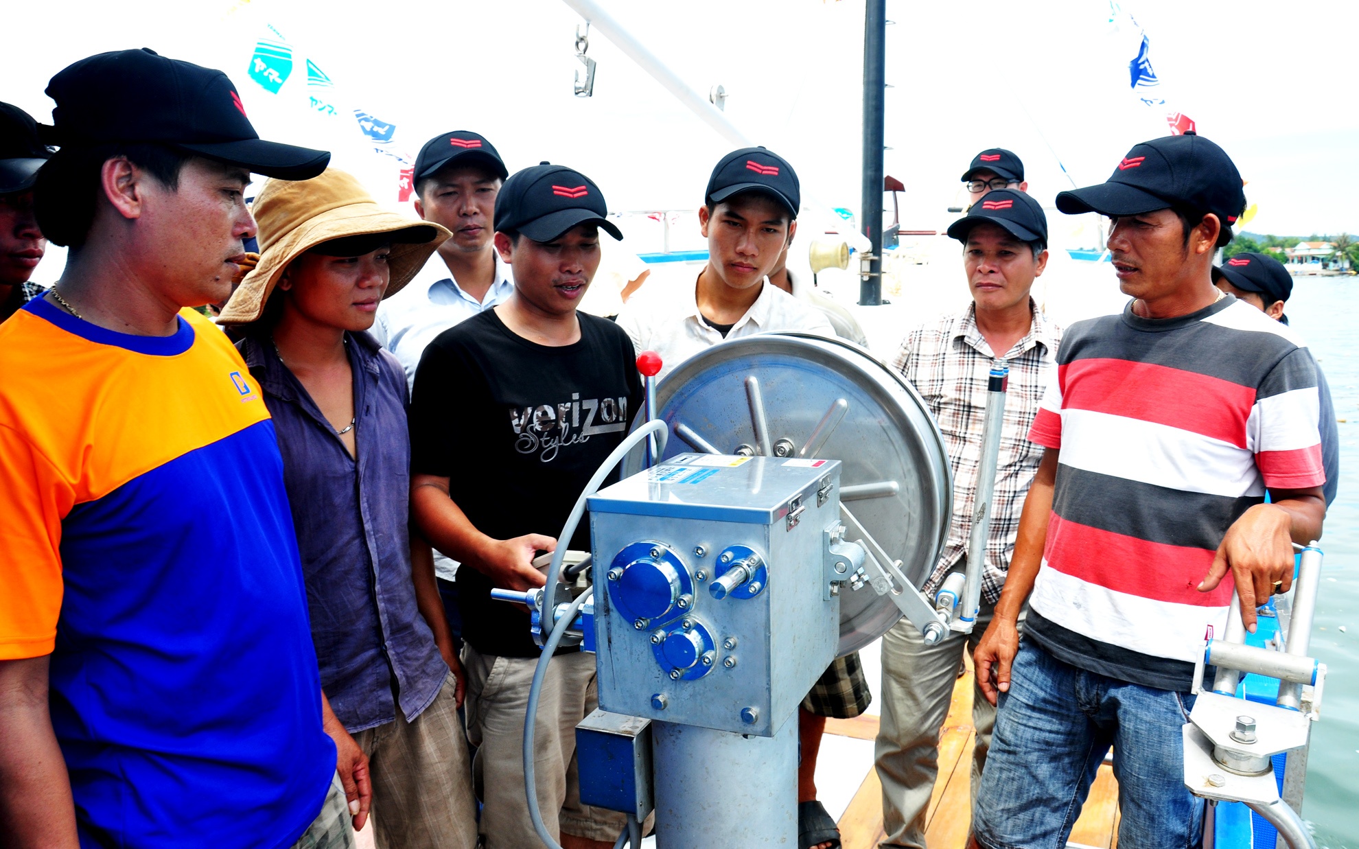 | Ngư dân miền Trung tham gia tập huấn kỹ thuật câu cá ngừ đại dương theo thiết bị công nghệ Nhật Bản. Ảnh: M.Hoàng. |