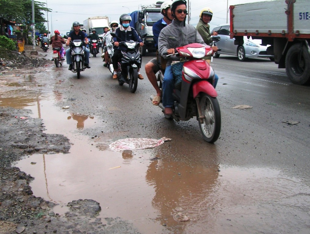 Gần một năm nay, đoạn Quốc lộ 1A từ Dốc Thiên Thu qua cầu Đồng Nai đến ngã tư Vũng Tàu có dấu hiệu xuống cấp, nhiều ổ gà, ổ voi xuất hiện, mặt đường ngập nước tạo thành những cái bẫy chết người.