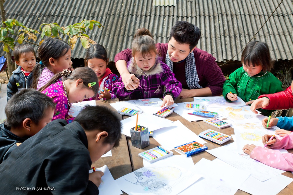 Nguyên Khang trong chuyến đi từ thiện tới trường tiểu học Lao Lủng Tủng (Hà Giang). |