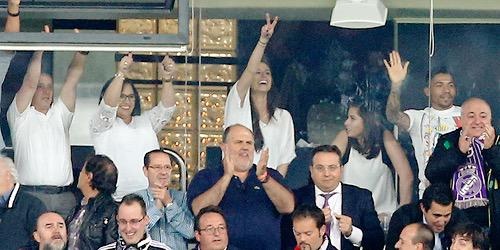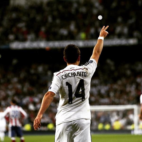 Ngay sau khi ghi bàn vào lưới Atletico, Chicharito lập tức hướng về phía khán đài, ăn mừng bàn thắng cùng bạn gái xinh đẹp Lucia Villalon mà quên chia vui cùng đồng đội.