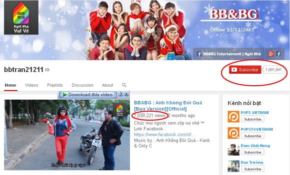 | BB&BG có lượng người theo dõi rất lớn trên Youtube. |