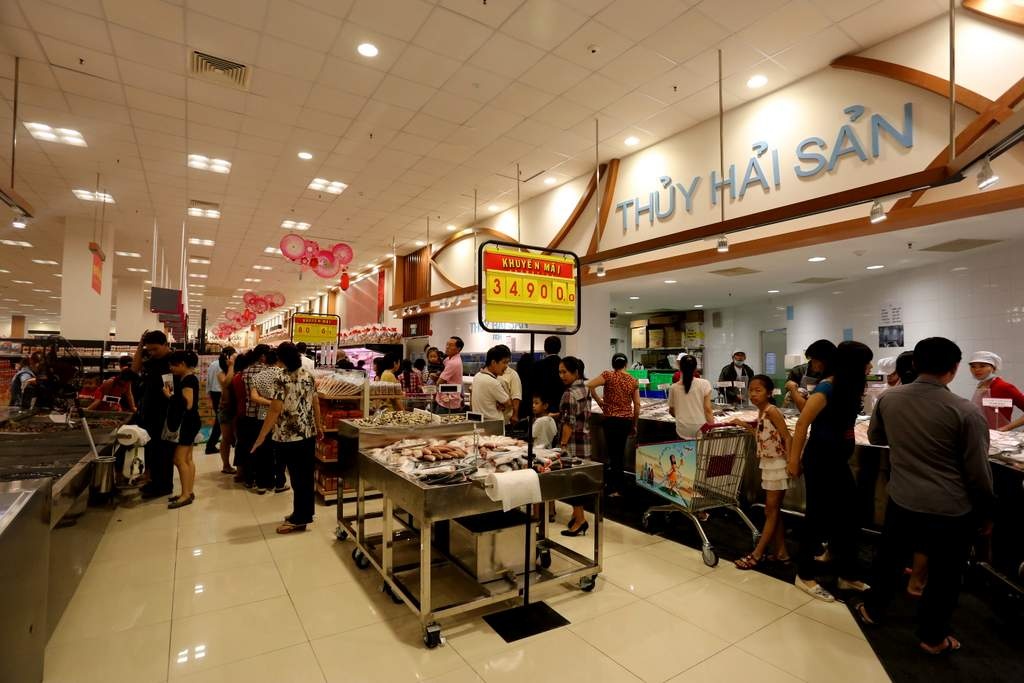 | Khu kinh doanh thực phẩm thu hút khá đông khách mua sắm trong ngày đầu mở cửa. |