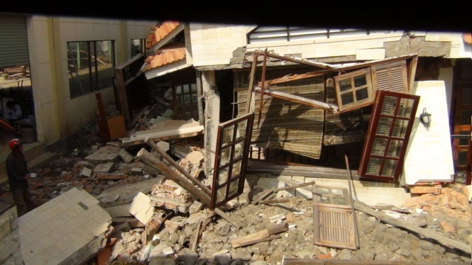 Được biết, ngôi nhà này đang trong quá trình nâng nền lên 3m trong vòng 6 tháng. Việc thi công được triển khai khoảng hai tháng nay và đã nâng lên được 1m thì đổ sập. Rất may, ngay khi xảy ra sự việc chưa có công nhân đến làm việc nên không gây ra thương vong.