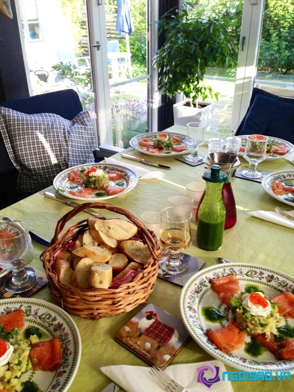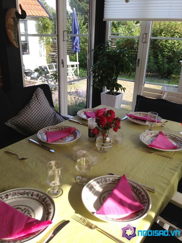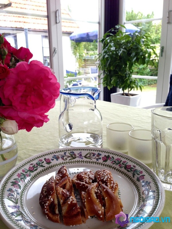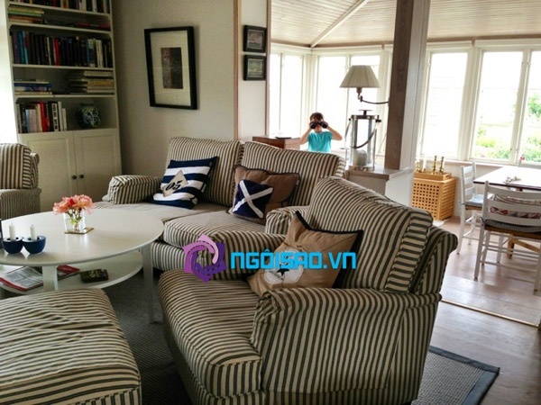 Ở Thụy Điển rất lạnh nên trong nhà thường có những bộ bàn ghế dày. Đoan Trang hay ngồi trên ghế ở phòng khách vì rất ấm.
