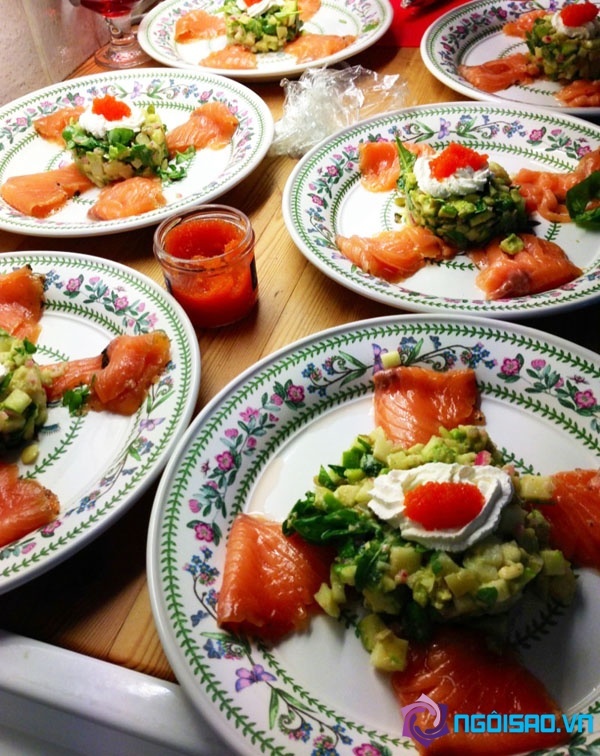 | Cá hồi xông khói, Đoan Trang đã học cách chế biến từ ba chồng làm nên salad bơ để ăn kèm. Món ăn ngon với nhiều dưỡng chất. |