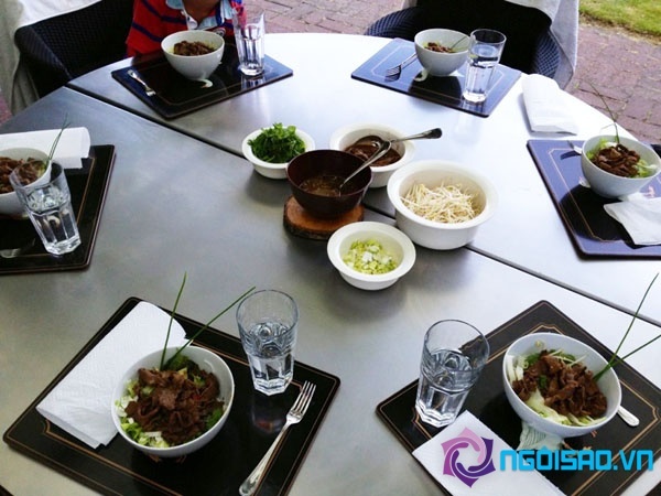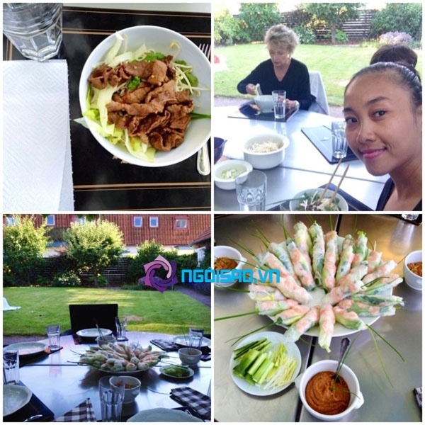| Cũng như chế biến món ăn Việt Nam cho ba mẹ và gia đình chồng cùng thưởng thức (bún thịt xào và gỏi cuốn). |