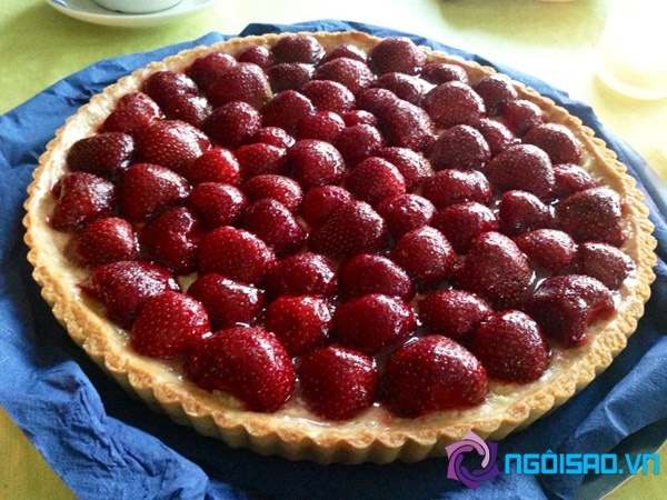 | Đoan Trang cũng học được món bánh dâu từ gia đình chồng. Đặc biệt ba chồng cô làm rất khéo, ít đường để giữ sức khỏe với dâu thơm chín vừa tới, ngon và bổ dưỡng. |