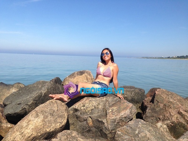| Đặc biệt, sáng nào Đoan Trang cũng ra biển bơi, phơi nắng và tối thì ngắm hoàng hôn. 10 giờ đêm mặt trời bắt đầu lặn, cô mê nhất khoảng thời gian này vì hoàng hôn trên biển đẹp tuyệt. Cô cảm nhận cuộc sống thật lắng đọng sau bao ngày vội vã với công việc. |