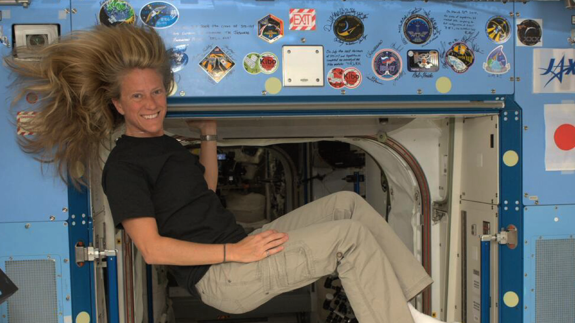| Nữ phi hành gia Karen Nyberg trên Trạm Không gian Quốc tế. Ảnh: NASA. |