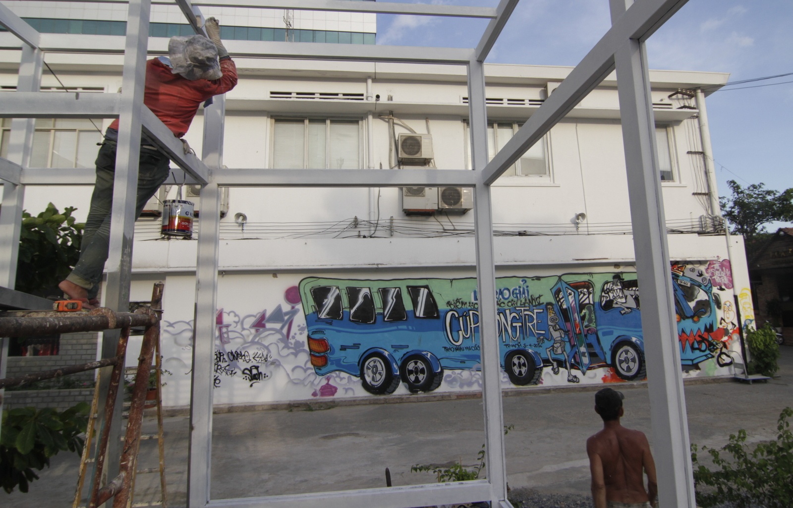 Nếu bên trong là các gallery, khu mua sắm, tiệm thời trang, quán cà phê... thì bên khu vực sân bên ngoài thực sự là không gian lý tưởng cho những người đam mê nghệ thuật đương đại. Những bức tường đã thu hút các nghệ sĩ trẻ của nhiều nhóm graffiti trong và ngoài nước đến trổ tài.