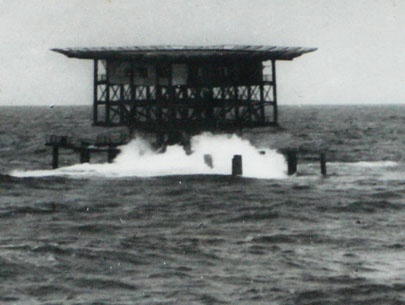 | Nhà giàn DK1 thế hệ đầu tiên có thiết kế khá thô sơ và nằm sát mặt nước biển nên rất dễ bị sóng biển đánh gây thiệt hại nhất là trong những trận bão lớn. Ảnh tư liệu |