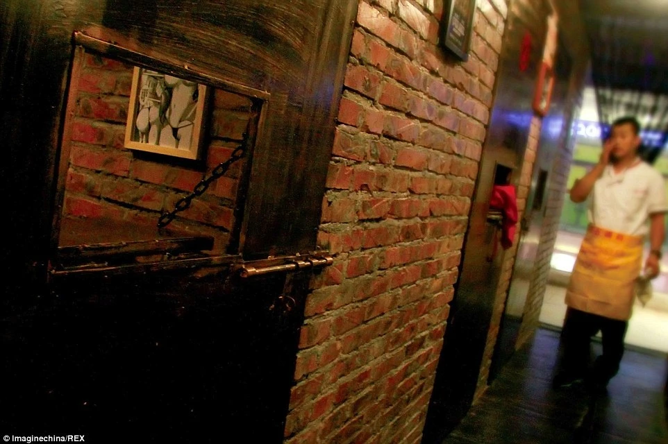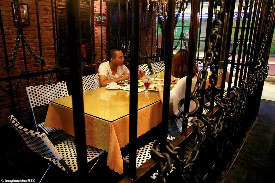 Nhân viên của một nhà hàng tại Trung Quốc đối xử với thực khách như tù nhân. Họ thưởng thức các món ăn trong một buồng giam với các song sắt và sợi xích lớn xung quanh.