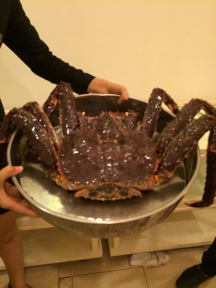| Những con cua Alaska cân nặng khoảng 3 kg với giá 12 triệu đồng tại một nhà hàng ở quận Đống Đa, Hà Nội. Ảnh: NVCC. |