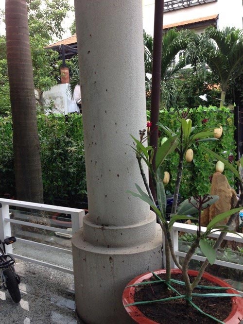 | Những dấu vết vẫn còn bám lại của những đợt tấn công liên tiếp bằng mắm tôm. |